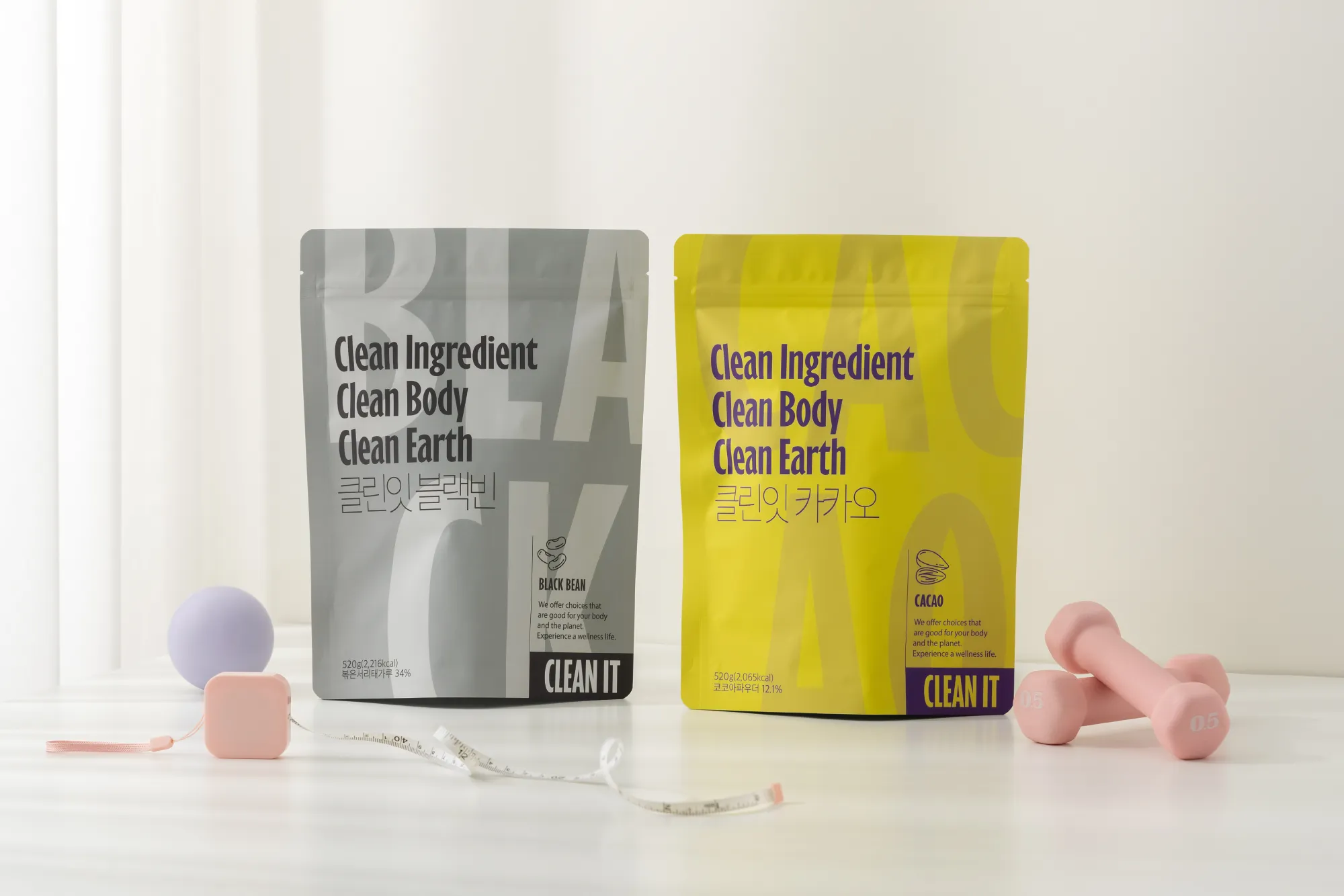 클린잇은 재활용률을 고려한 스탠드업 파우치를 사용하고 플라스틱 스쿱을 제거하는 등, 패키징에서도 지속 가능성을 실천하고 있습니다.